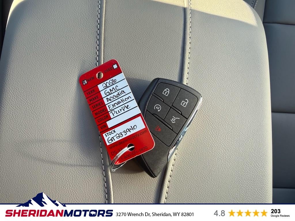 2026 GMC Acadia AWD Elevation — ready now in Sheridan, WY. This premium midsize SUV pairs a fuel-efficient 4-cylinder 2.5L gasoline engine with confident all-wheel drive to tackle Wyoming roads and changing weather. Clean, modern styling and Elevation trim enhancements give you standout presence without sacrificing practicality. Inside, enjoy seamless smartphone integration with Android Auto and convenient Hands-Free Bluetooth® for safer, connected driving. The Back-Up Camera aids parking and low-speed maneuvering, while Adaptive Cruise Control delivers relaxed highway cruising and added safety on long trips. Stay comfortable on crisp Sheridan mornings with a Heated Steering Wheel for immediate warmth and grip. This GMC Acadia offers versatile cargo space and a refined cabin suited for daily commutes, weekend getaways, and family errands. With strong fuel economy from the efficient 2.5L engine and intelligent AWD traction, it's built for both city streets and mountain excursions. Priced competitively — the best price available in the area — this 2026 GMC Acadia AWD Elevation represents exceptional value for drivers seeking capability, technology, and comfort. Located in Sheridan, WY, it's ready for test drives and immediate delivery. Contact us today to schedule a viewing and lock in this unbeatable price before it's gone.