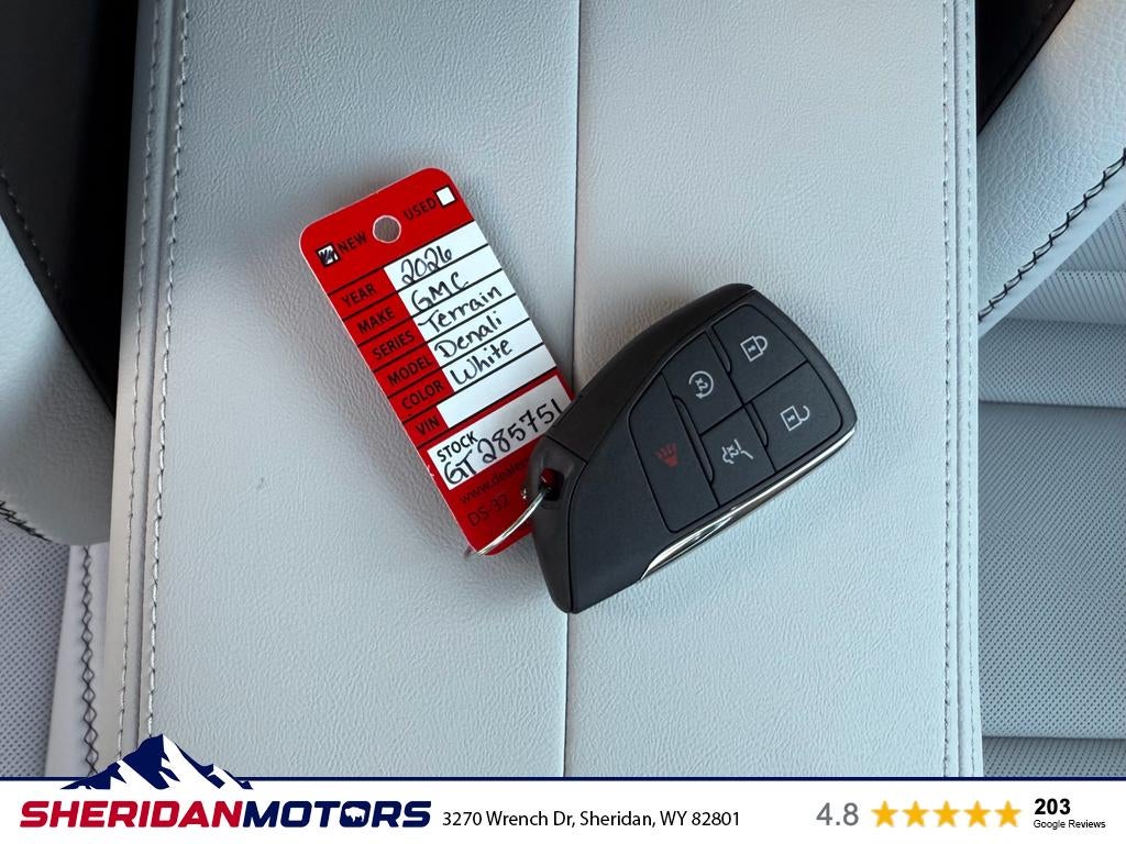2026 GMC Terrain AWD Denali — premium performance and advanced safety now available in Sheridan, WY. This Denali trim pairs a responsive 4-cylinder 1.5L gasoline engine with intelligent all-wheel drive to deliver confident handling and efficient highway mileage, making it ideal for Wyoming roads and mountain drives. The interior blends upscale materials with cutting-edge technology, including built-in navigation to keep you on course and XM Radio for endless entertainment on every trip. Safety and driver-assist features are extensive: Adaptive Cruise Control reduces driver fatigue on longer journeys, Lane Keep Assist and Lane Departure Warning work together to help maintain lane position, and multiple airbags plus advanced crash mitigation systems enhance occupant protection. Denali-specific touches add refined styling and comfort, ensuring a premium driving experience every time you get behind the wheel. This 2026 GMC Terrain AWD Denali located in Sheridan, WY is competitively priced and offers the best value in the area — exceptional features and Denali-level build quality at the best price you'll find locally. Whether commuting, road-tripping, or navigating winter conditions, this GMC Terrain delivers capability, technology, and safety in a stylish package. Contact us today for availability, a test drive, and to secure this top-value Denali before it's gone.