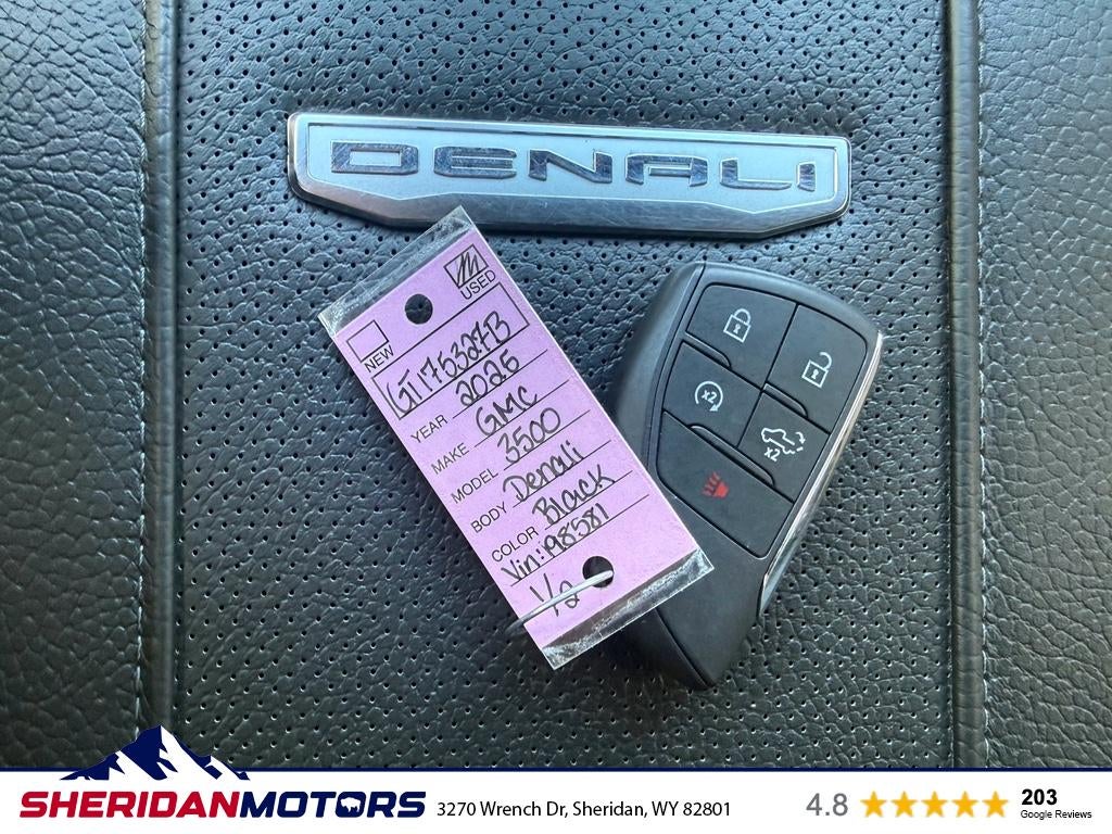 2025 GMC Sierra 3500 Denali — 4WD, V8 6.6L Diesel, 9,891 miles — Sheridan, WY Looking for a premium heavy-duty truck at the best price? This 2025 GMC Sierra 3500 Denali in Sheridan, WY delivers luxury, capability, and low mileage — only 9,891 miles. Powered by a V8 6.6L Diesel and equipped with 4WD, this GMC Sierra 3500 is built for towing, worksite performance, and confident driving in Wyoming conditions. Top features include the Off-Road Package for rugged terrain, BOSE stereo for premium sound, Lane Departure Warning and Adaptive Cruise Control for enhanced safety, and Steering Wheel Audio Controls for convenience. The Denali trim adds refined interior finishes, advanced technology, and comfort for long hauls or daily driving. This GMC Sierra 3500's low mileage, diesel V8 powertrain, and comprehensive feature set make it a standout value. Priced competitively — the best price in the area — it's ideal for buyers seeking a capable, reliable heavy-duty truck with luxury touches. Located in Sheridan, WY, this 2025 GMC Sierra 3500 Denali is ready for a test drive. Contact us to schedule an appointment, request a vehicle history report, or learn more about financing and warranty options. Don't miss this low-mileage diesel Denali at the best price.