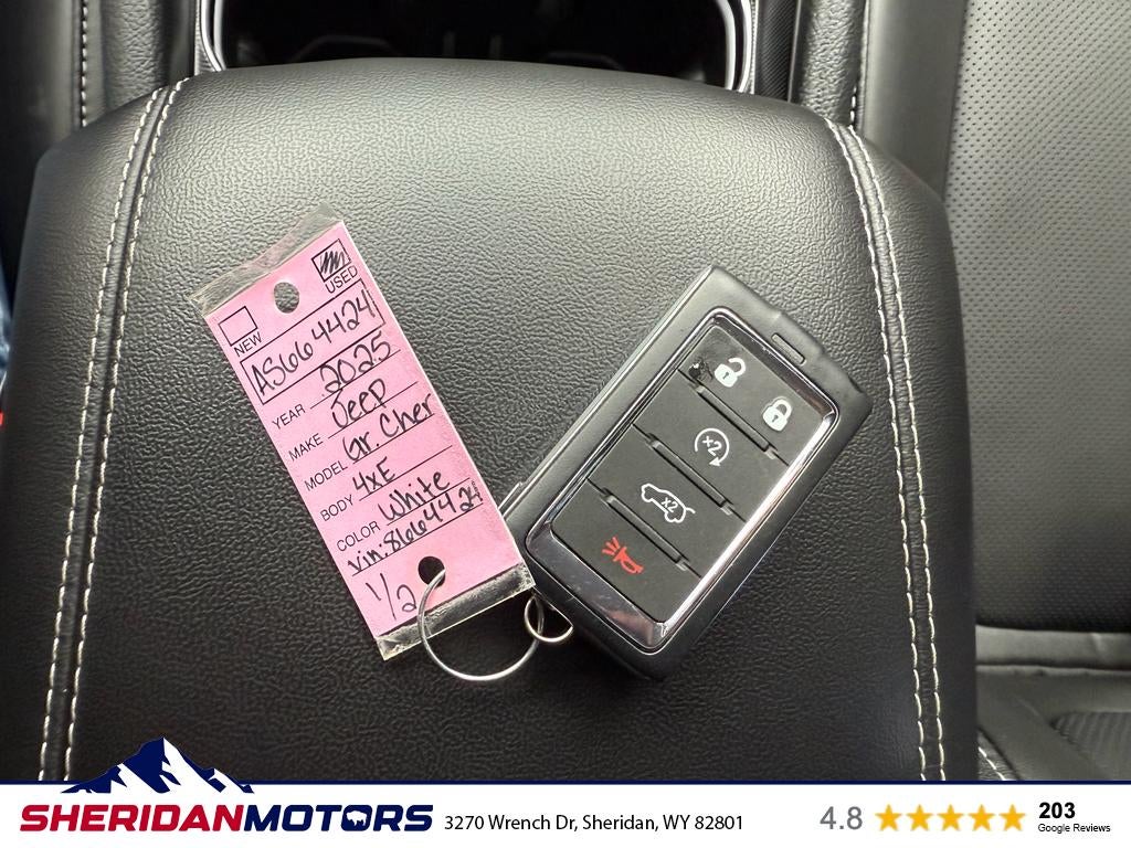 An off-road package is equipped on this unit. Start the Jeep Grand Cherokee 4xe from inside with remote start. This vehicle features a hands-free Bluetooth® phone system. The leather seats in it are a must for buyers looking for comfort, durability, and style. See what's behind you with the back up camera on it. Keep your hands warm all winter with a heated steering wheel in the vehicle . Apple CarPlay: Seamless smartphone integration for this unit - stay connected and entertained on the go! This Jeep Grand Cherokee 4xe has auto-adjust speed for safe following. The Jeep Grand Cherokee 4xe comes equipped with Android Auto for seamless smartphone integration on the road. You'll never again be lost in a crowded city or a country region with the navigation system on this 2025 Jeep Grand Cherokee 4xe . The Jeep Grand Cherokee 4xe has four wheel drive capabilities. This unit has a 4 Cyl, 2.0L high output engine.