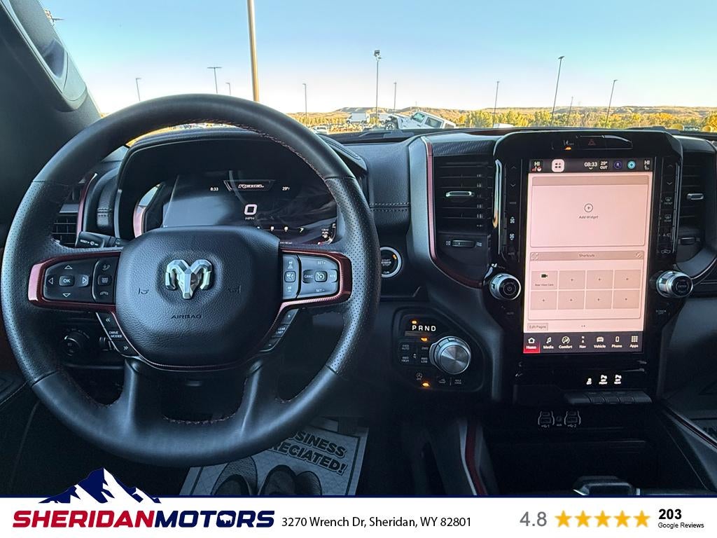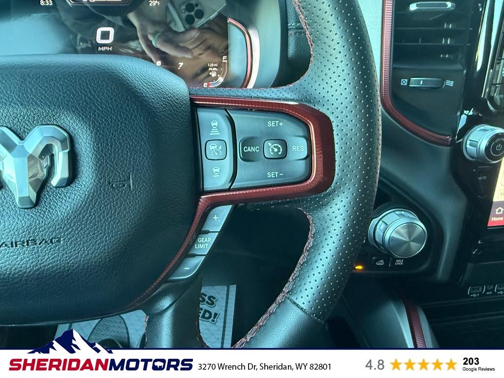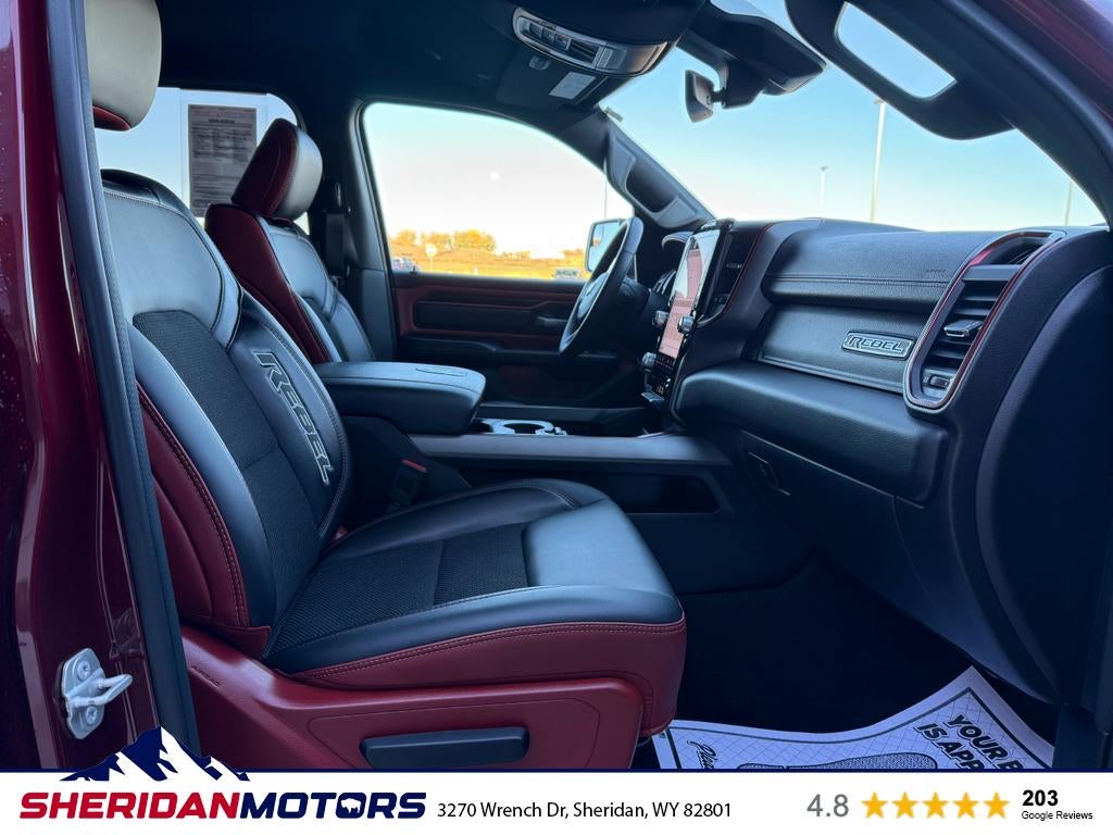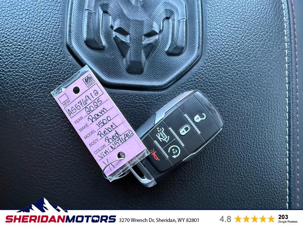 Discover rugged capability and modern comfort with this 2025 Ram 1500 Rebel, now available in Sheridan, WY. With just 31,384 miles, this Rebel pairs a robust 6-cylinder, 3.0L gasoline engine with dependable 4WD to tackle Wyoming roads, trails, and highway drives with confidence. The Rebel trim delivers a commanding presence and off-road-ready performance while maintaining refined features for everyday driving. Safety and convenience are prioritized with a Back-Up Camera and Rear Parking Sensors to make maneuvering easy in tight spaces. Adaptive Cruise Control enhances long-distance comfort and reduces driver fatigue on extended trips. Automatic Climate Control keeps the cabin comfortable for all occupants, adjusting temperature settings automatically to maintain your desired environment. This vehicle also comes with a CARFAX Clean Report, providing documented history for added peace of mind. We’re offering this 2025 Ram 1500 Rebel at the best price in the area — exceptional value for a well-maintained, low-mileage truck with premium features. Whether you need capable towing performance, off-road capability, or a stylish daily driver, this Rebel is a versatile choice. Located in Sheridan, WY, this truck is ready for immediate test drives and inspection. Contact us to schedule your appointment and see why this Ram 1500 Rebel is an outstanding value.
